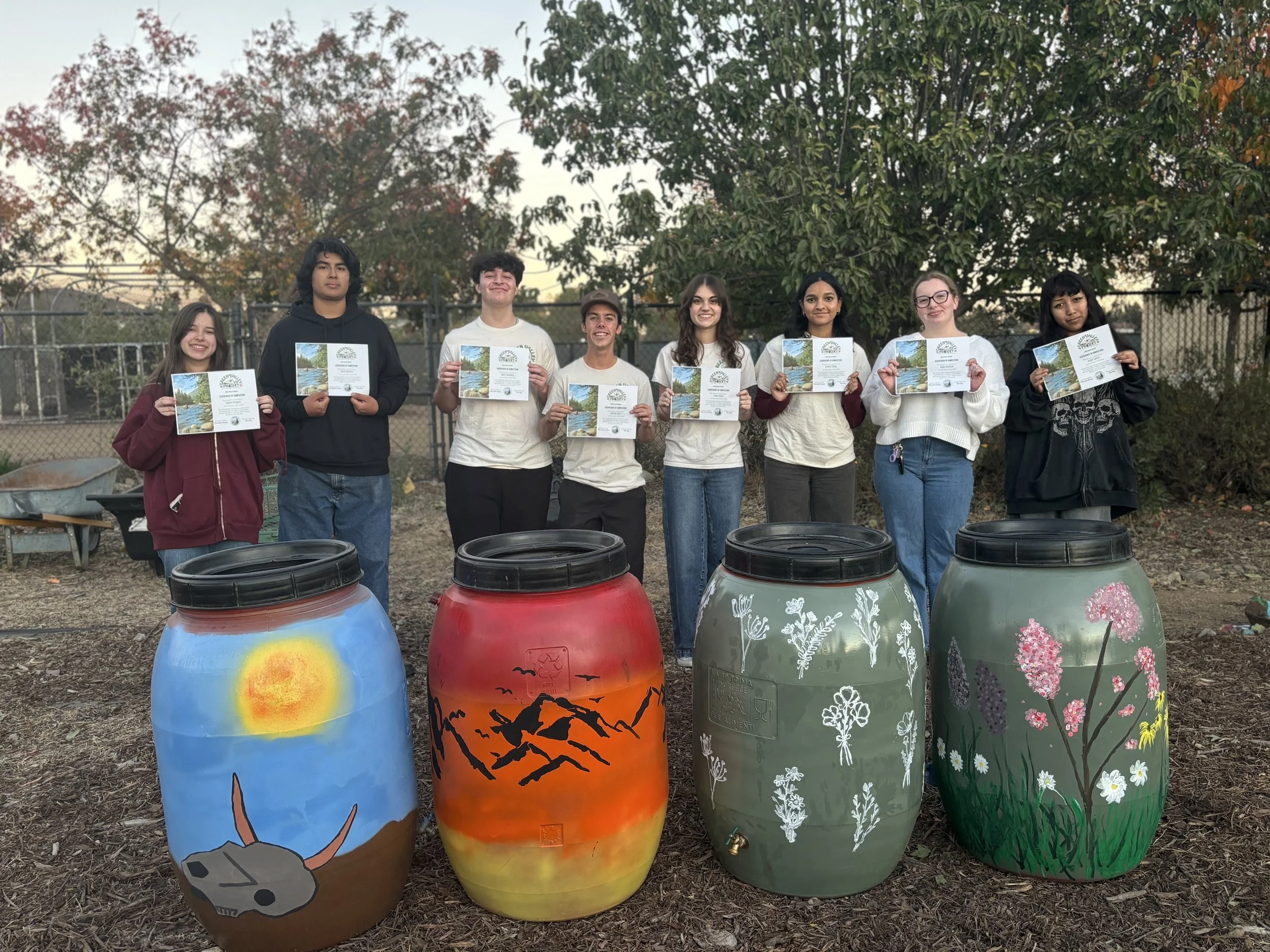 The team painted seven rain barrels, selling five at an auction to help pay for costs and donating two to local school gardens including the Cal Lutheran Seed Garden and the Thousand Oaks High School native plant garden.